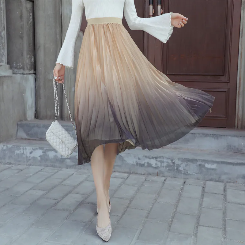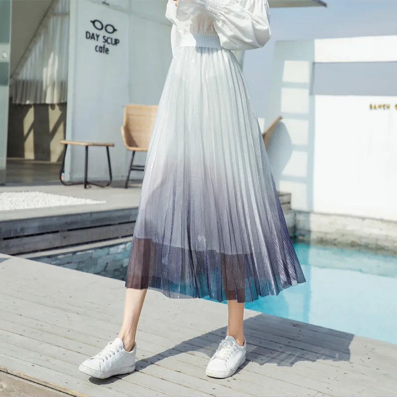 Best Price for Korean Fashion Skirts Womens Woman High Waist Mesh Skirt Faldas Mujer Moda Women Lace Different Color Skirts Woman Pleated Skirt
