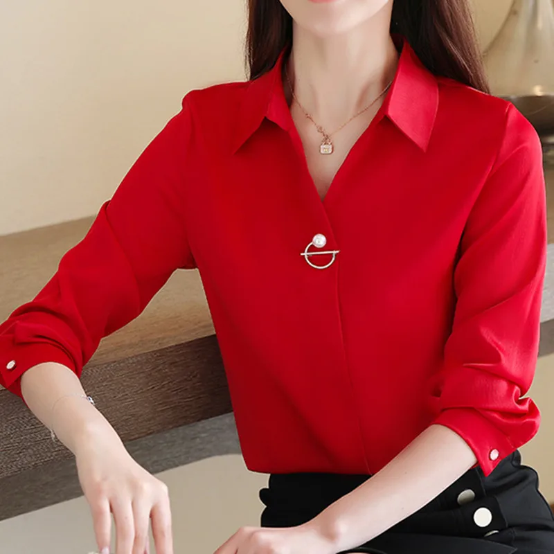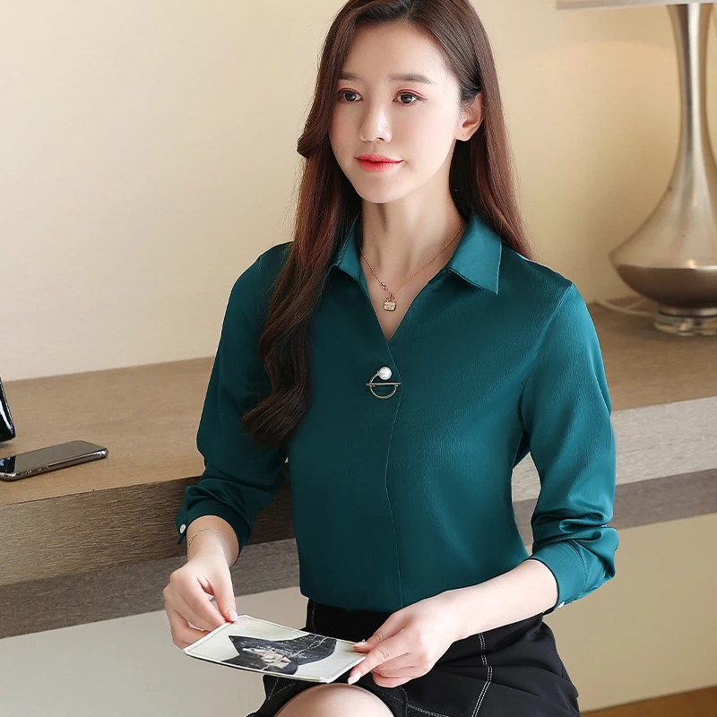 Chance Description of Korean Silk Women Shirts Women Satin Blouse Shirt Plus Size Woman Long Sleeve Blouse Women V-neck OL Shirts Blusas Mujer De Moda