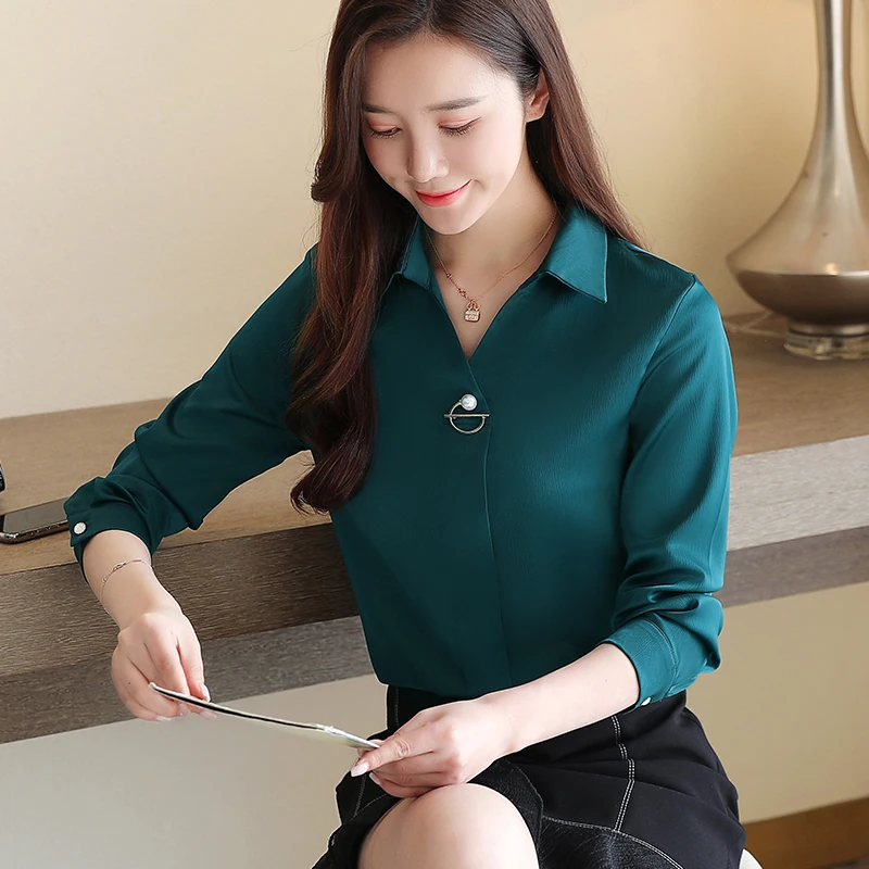 If You want to buy for Blouses , then Korean Silk Women Shirts Women Satin Blouse Shirt Plus Size Woman Long Sleeve Blouse Women V-neck OL Shirts Blusas Mujer De Moda may be make you love