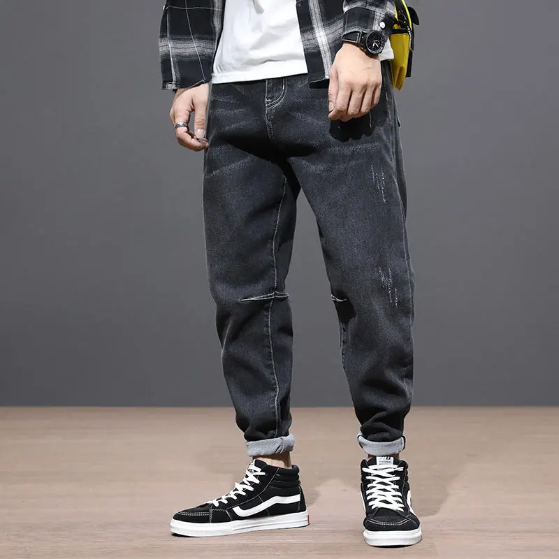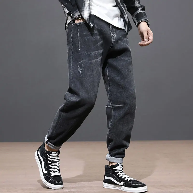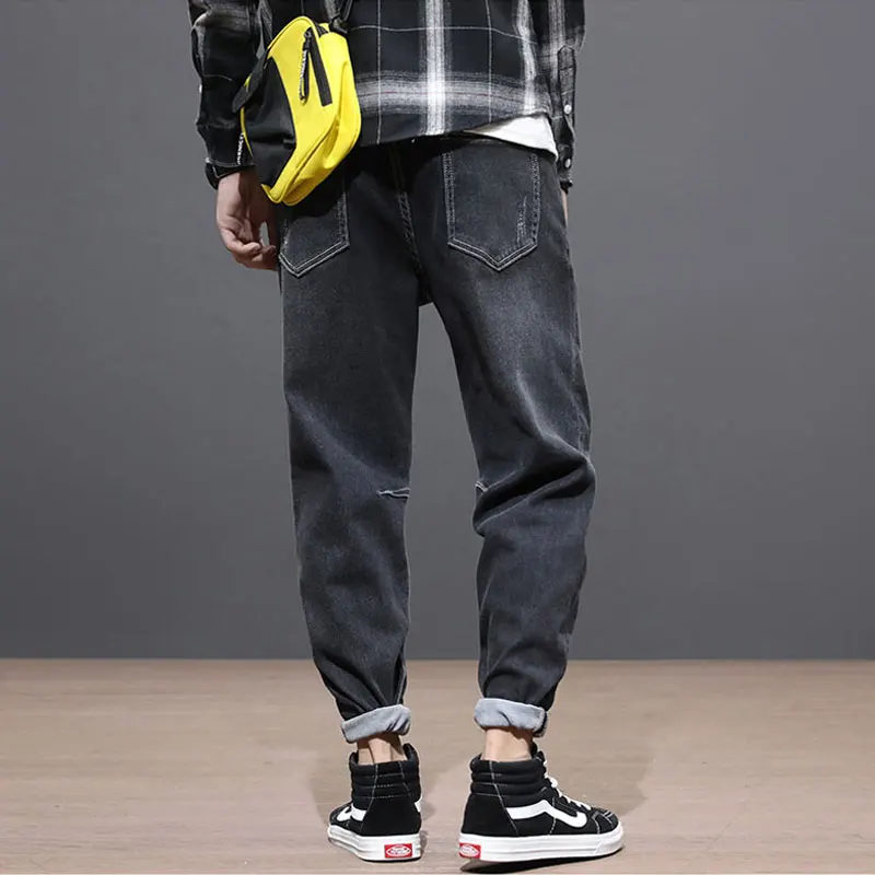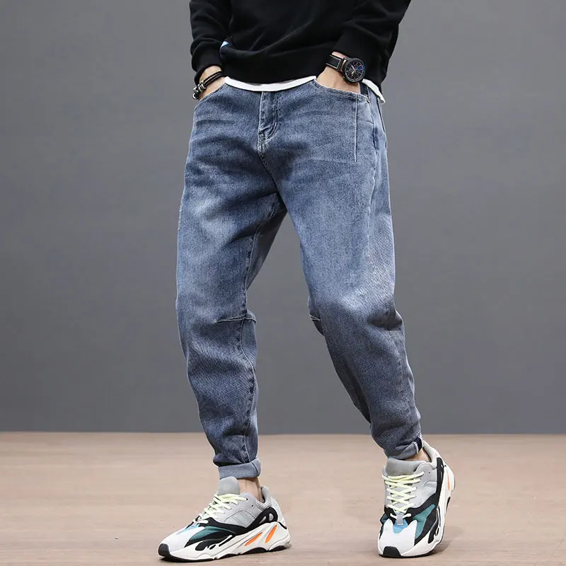 Chance Description of Korean Style Fashion Men Jeans Loose Fit Elastic Denim Harem Pants Spliced Designer Streetwear Hip Hop Jeans Men Taper Trousers