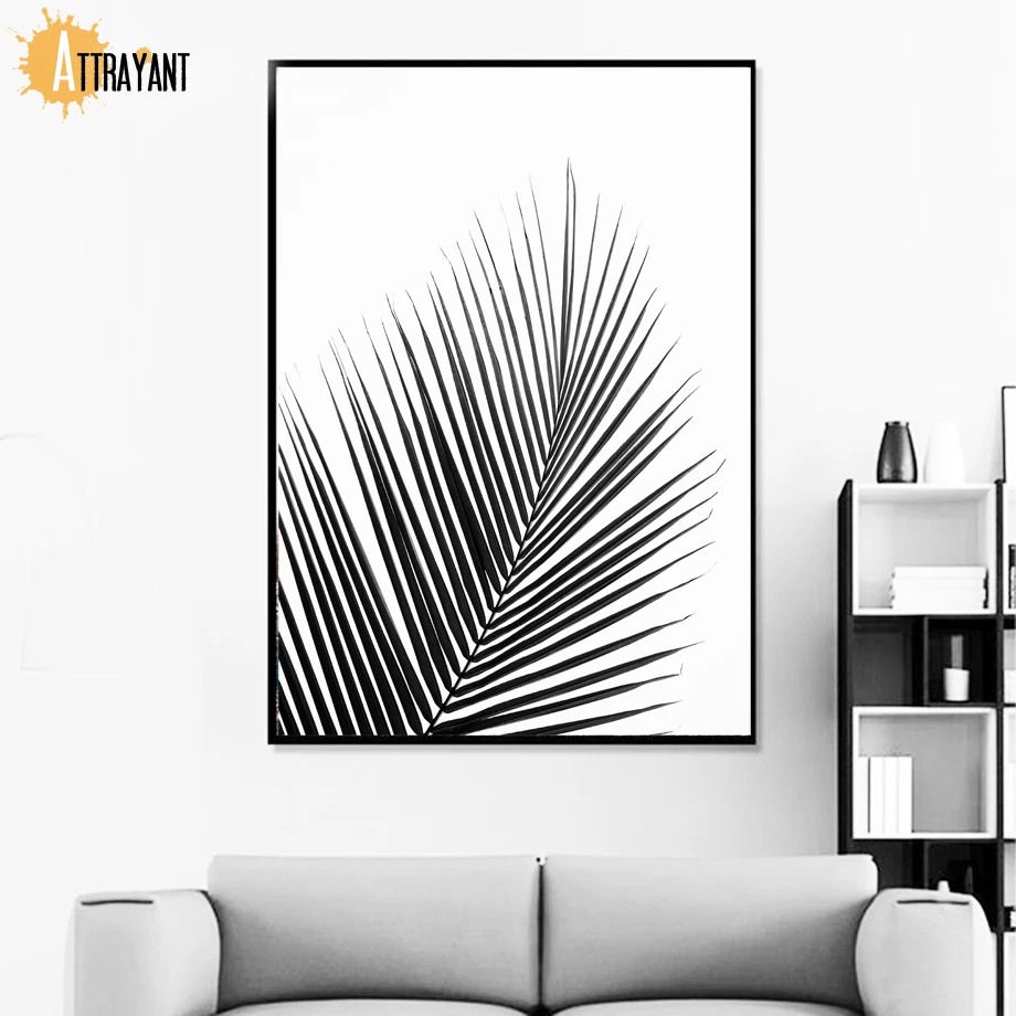 .Images for Palm Leaf Silhouette Black White Wall Art Canvas Painting Nordic Posters And Prints Wall Pictures For Living Room Home Decor