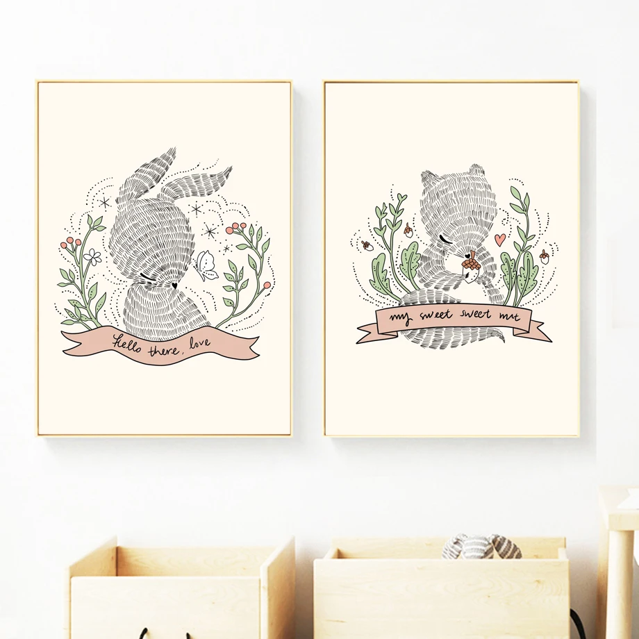 Best Squirrel Rabbit Fox Wall Art Canvas Painting Nordic Posters And Prints Wall Pictures For Kids Bedroom Baby Boy Girl Room Decor Free Shipping