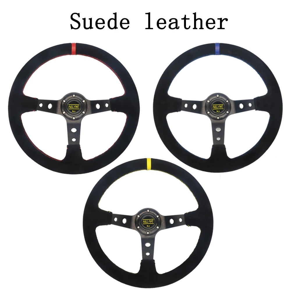 Universal 350MM Leather Steering Wheel Suede Steering Wheel Drift racing type High quality PU/Suede/PVC Style