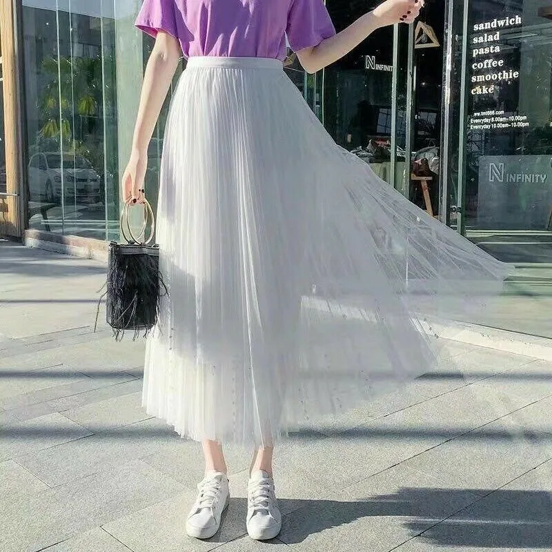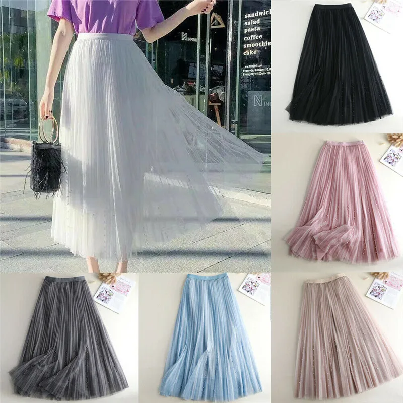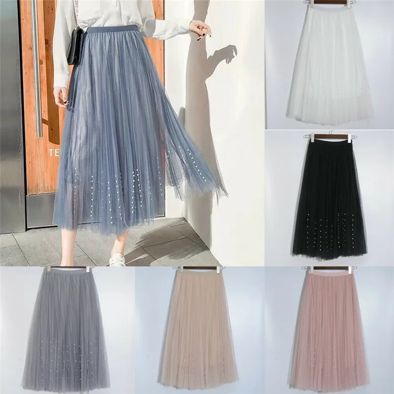Related Product for [KEYWORD] and Women Casual and Loose Solid Transparent Princess Tulle Pleated Wedding Prom Beading Bouffant Thin Long SkirtsKorean Fashion Skirts Womens Elegant Women Pleated Skirt Woman High Waist Skirts Office Lady Solid Long Skirt Faldas Mujer Moda