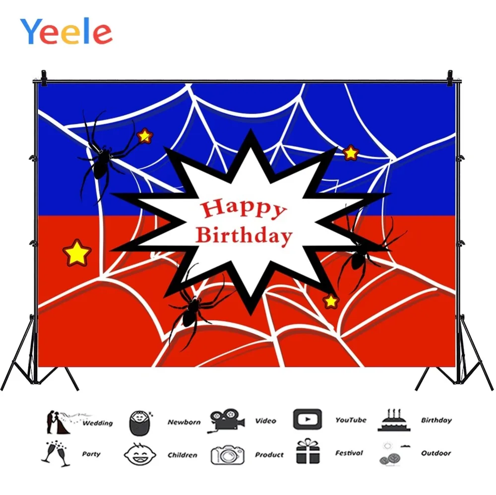 .Gallery for Yeele Red Blue Spider Web Star Boom Pattern Birthday Photography Backgrounds Customized Photographic Backdrops for Photo Studio