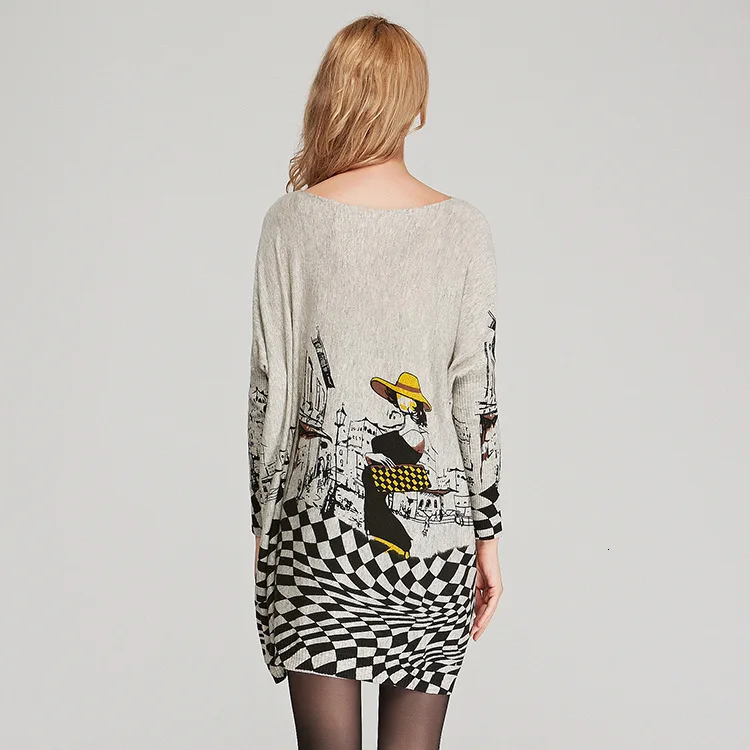.Pictures of Autumn New Loose Ladies Knitted Sweater 2020 Printed Jumper Women O Neck Batwing Sleeve Casual Pullover Mujer Sweter Damski