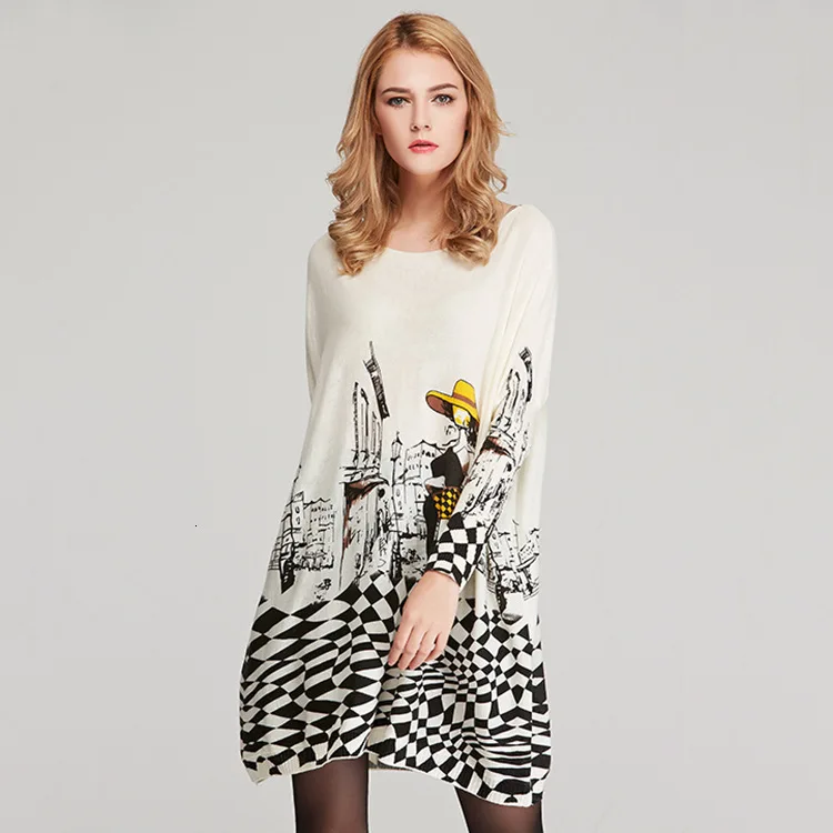 If You want to buy for Sweaters, then Autumn New Loose Ladies Knitted Sweater 2020 Printed Jumper Women O Neck Batwing Sleeve Casual Pullover Mujer Sweter Damski may be make you love