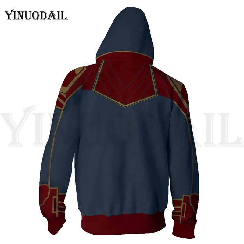 Offer Description of Avengers 4 Endgame Men and Women Zipper Hoodies Captain Marvel 3D Hooded Jacket Superhero Sweatshirt Streetwear Cosplay Costume