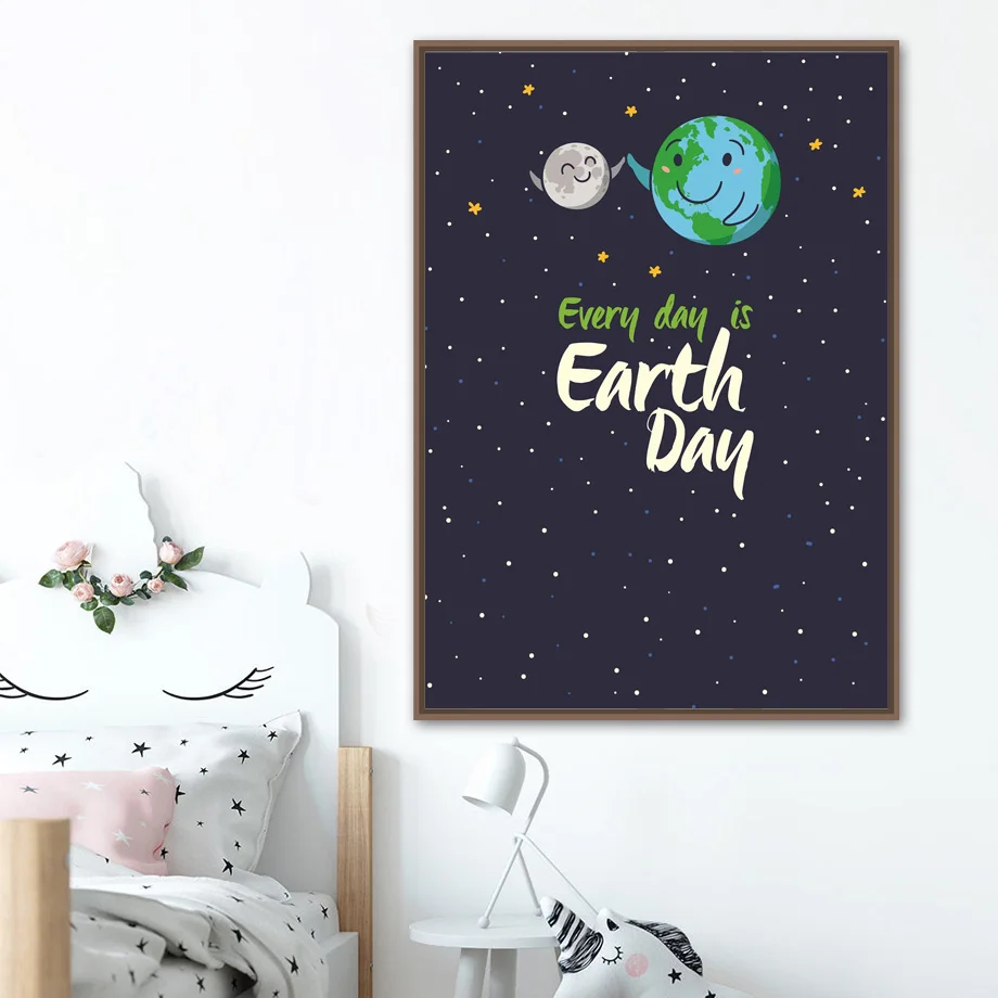 Limited Chance of Cartoon Earth Aay Nordic Poster And Prints Wall Art Canvas Painting Wall Pictures Kids Bedroom Baby Boy Girl Room Nursery Decor
