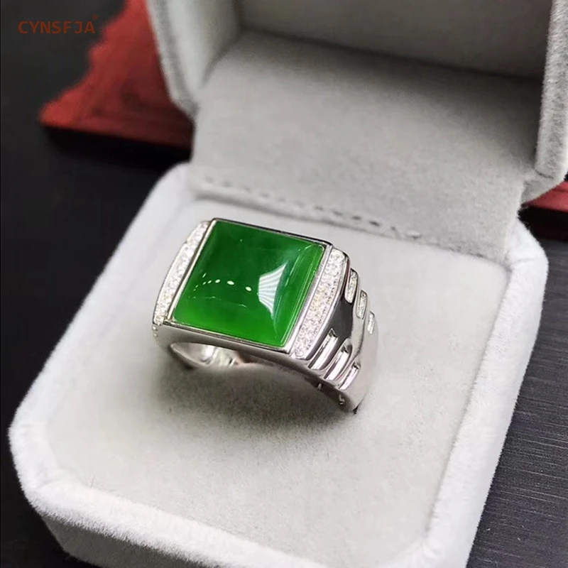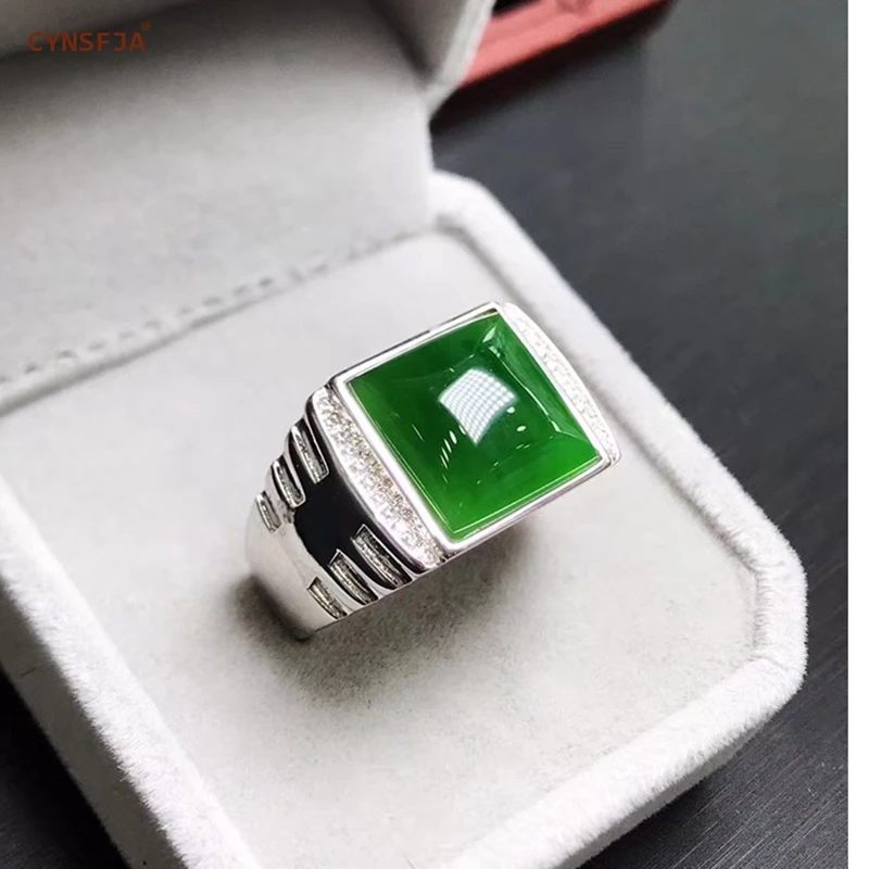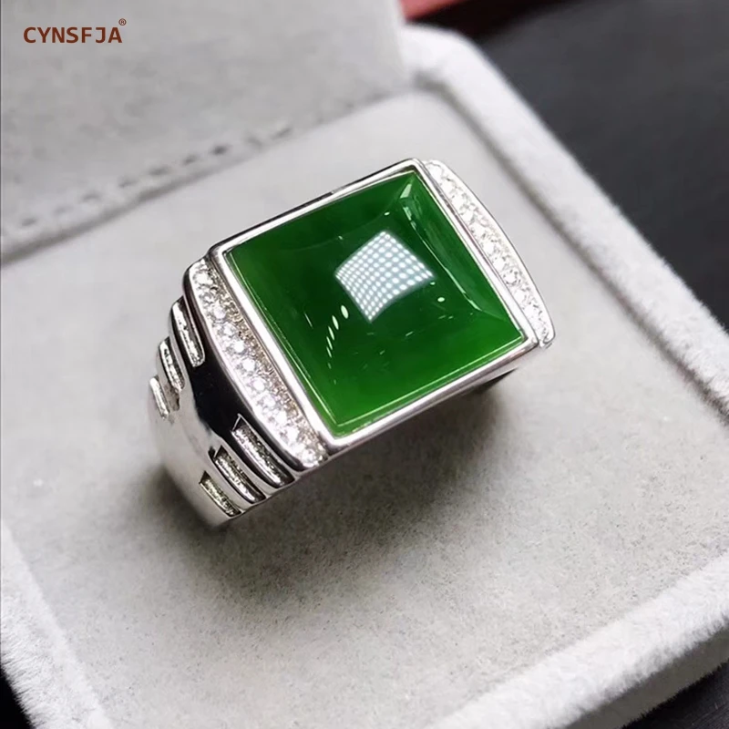 .Pictures of CYNSFJA Real Certified Natural Hetian Jade Jasper 925 Sterling Silver Lucky Men's Amulets Green Jade Ring High Quality Best Gift
