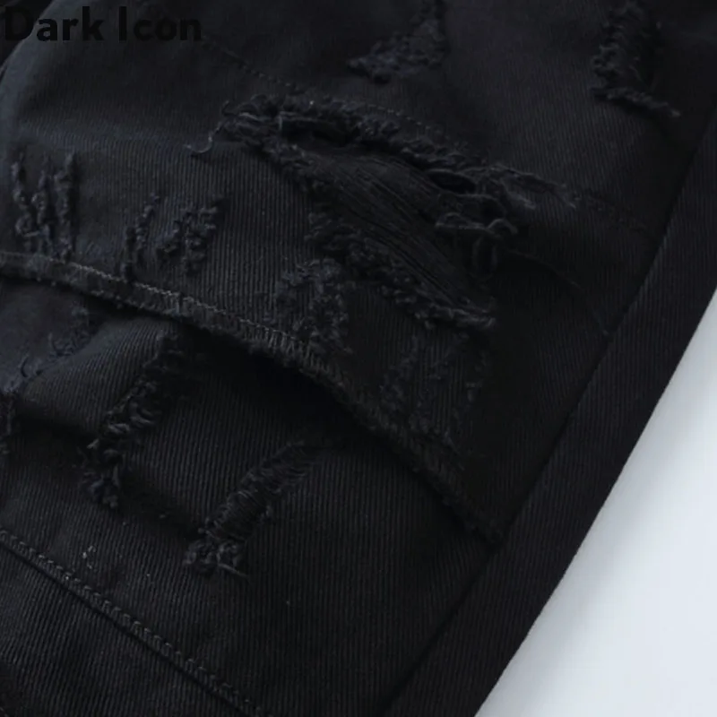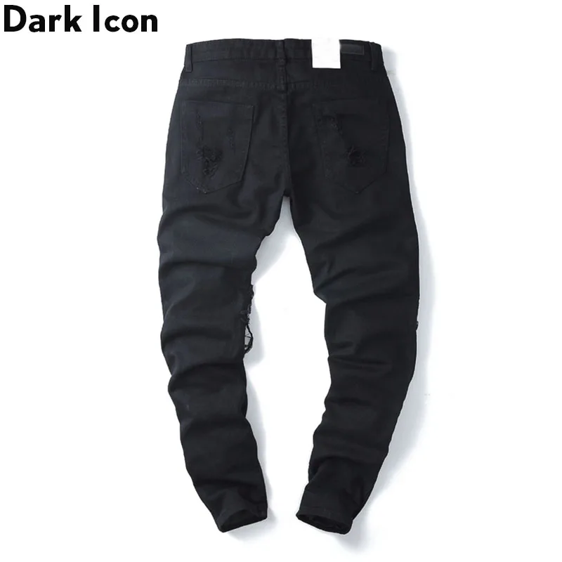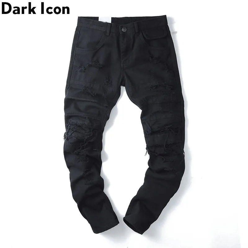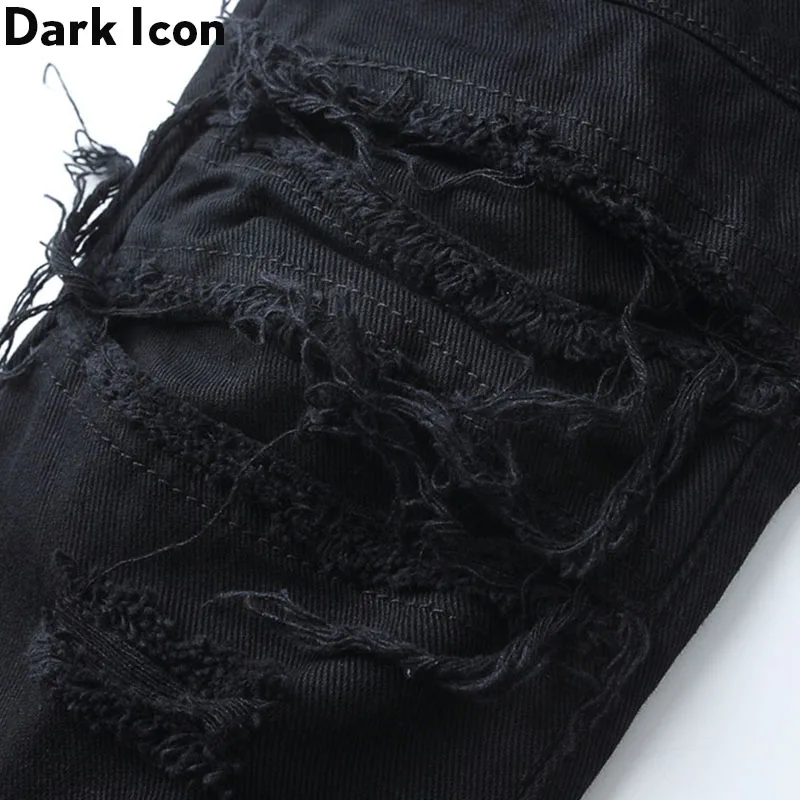 .Images of Dark Icon Ripped Jeans Men Slim Fit Denim Pants Hip Hop Jean Pants Men's Trouseres Streetwear