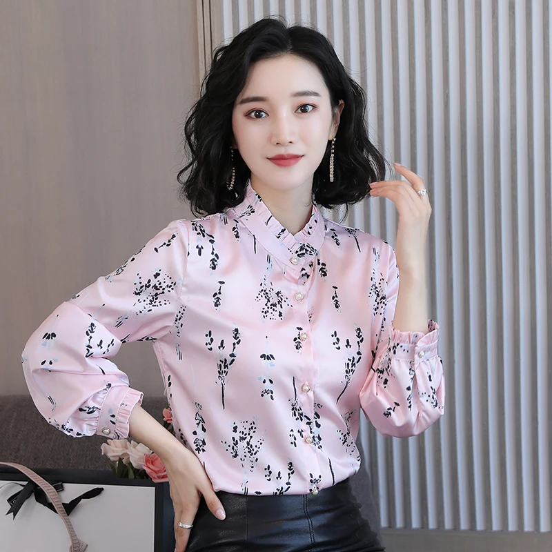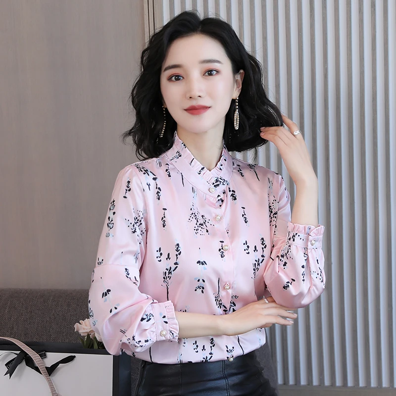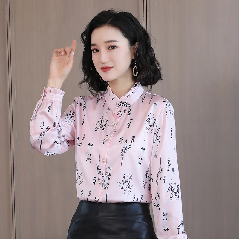 .Gallery for Heavy silk satin shirt women's long sleeves 2019 new silk silk print top stylish and elegant temperament