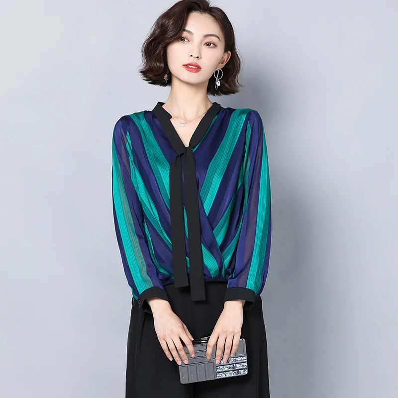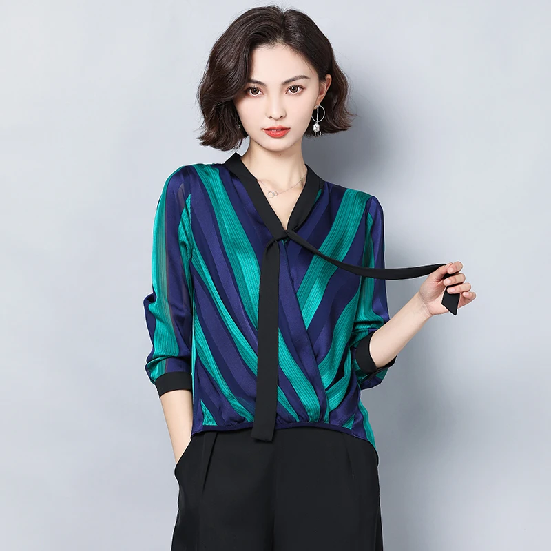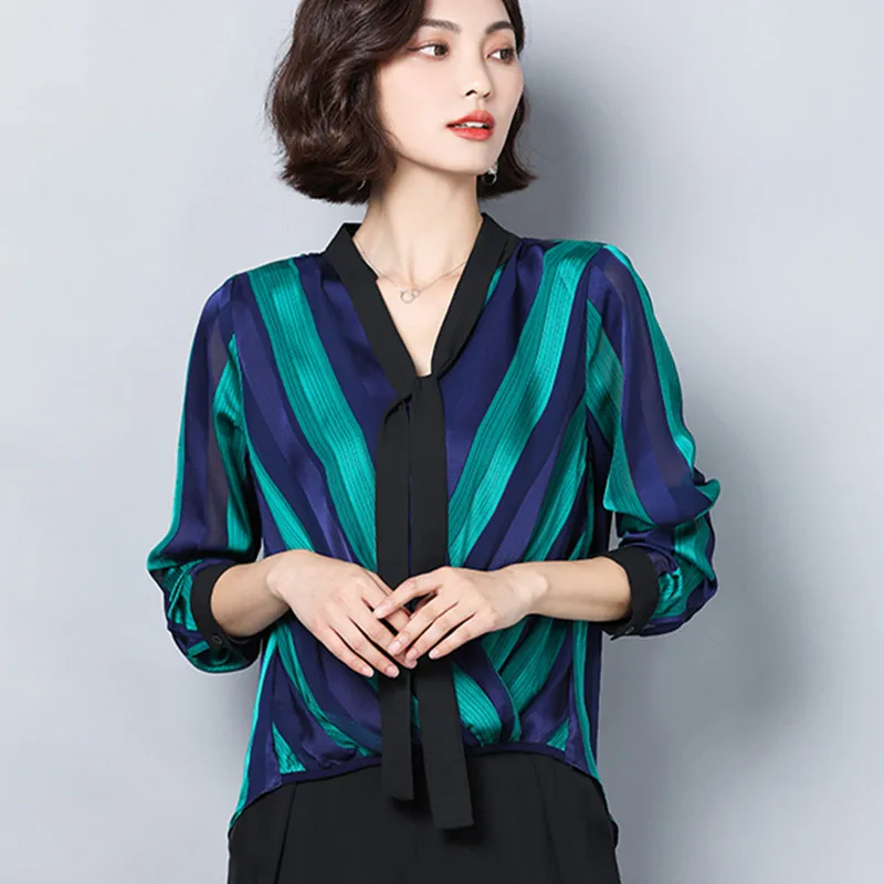 Chance Description of Korean Fashion Women Blouses Women Striped Blouse Top Plus Size Blusas Mujer De Moda Blusas Femininas Elegante Lady Satin Shirts