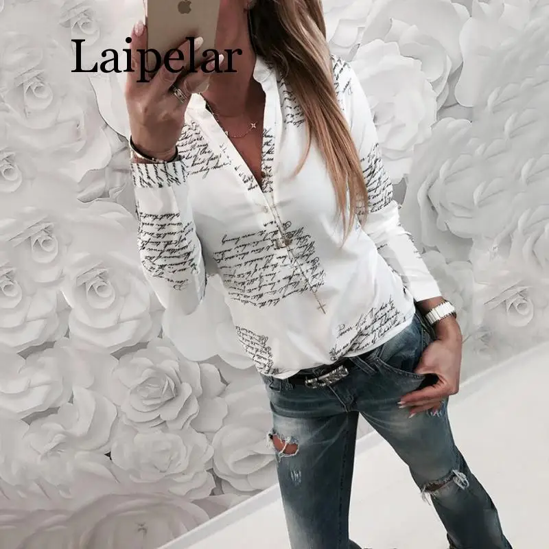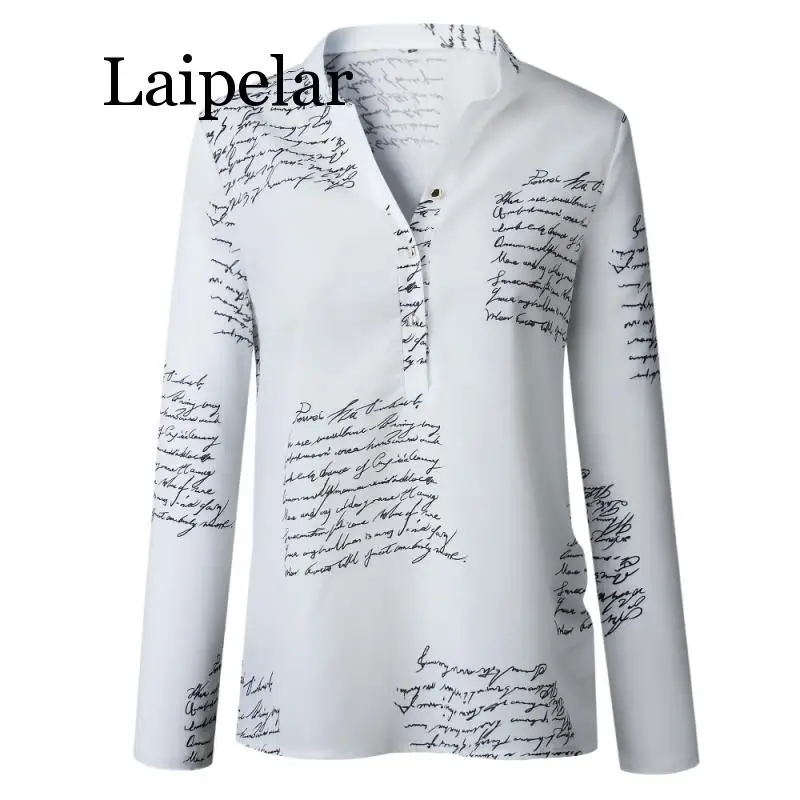 Addition Information of Laipelar 2019 Spring Women Fashion Elegant White Curved Hem Basic Blouse Office Workwear Top Letter Print Button Design Casual
