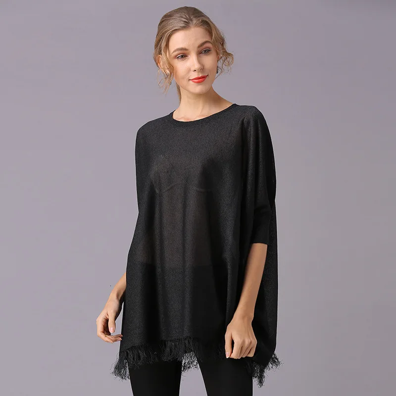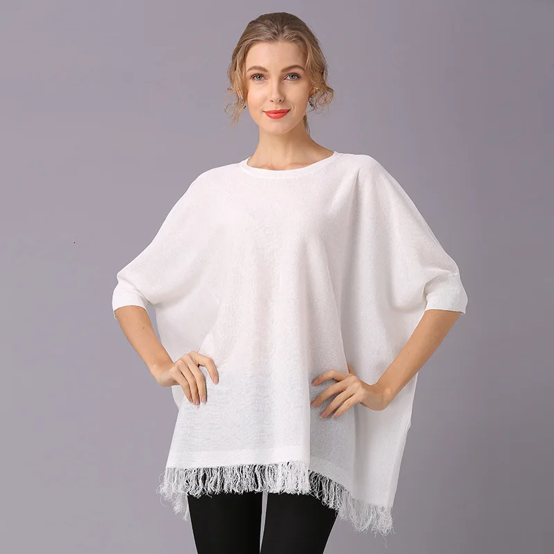 Chance Description for New Autumn Women Knitted Sweater Round Neck Loose Ladies Solid Casual Pullover Tassel Bat Sleeve Jumper Tops 2020 Jersey Mujer