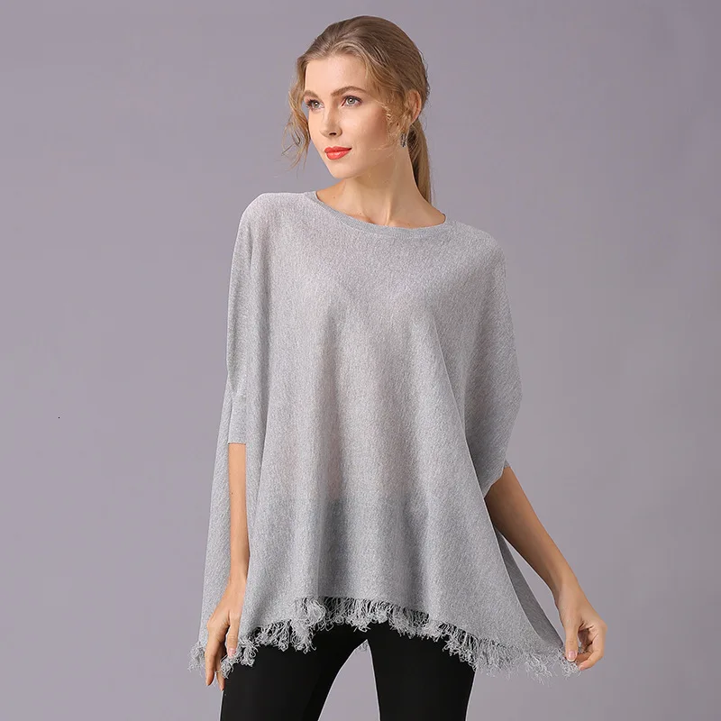 .Pictures for New Autumn Women Knitted Sweater Round Neck Loose Ladies Solid Casual Pullover Tassel Bat Sleeve Jumper Tops 2020 Jersey Mujer