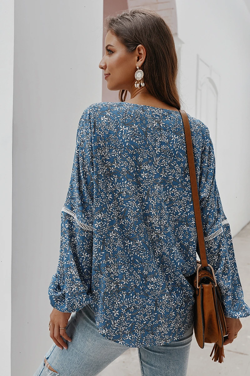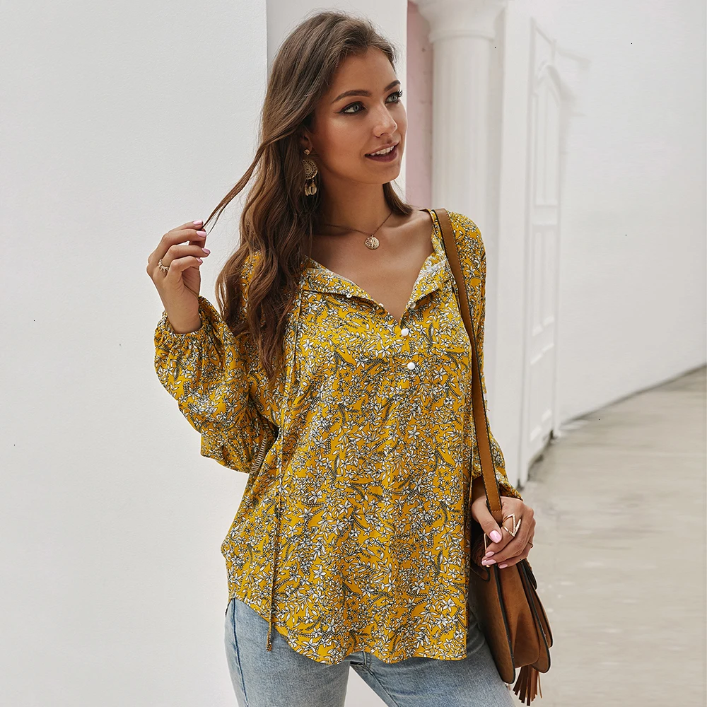 .Gallery of New Fashion Floral Print Womens Tops And Blouses Spring Summer V Neck Lantern Sleeve Casual Boho Ladies Shirt Blusas Mujer 2020
