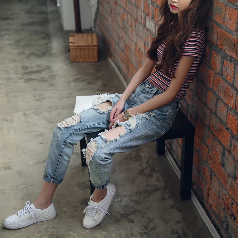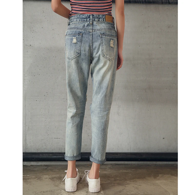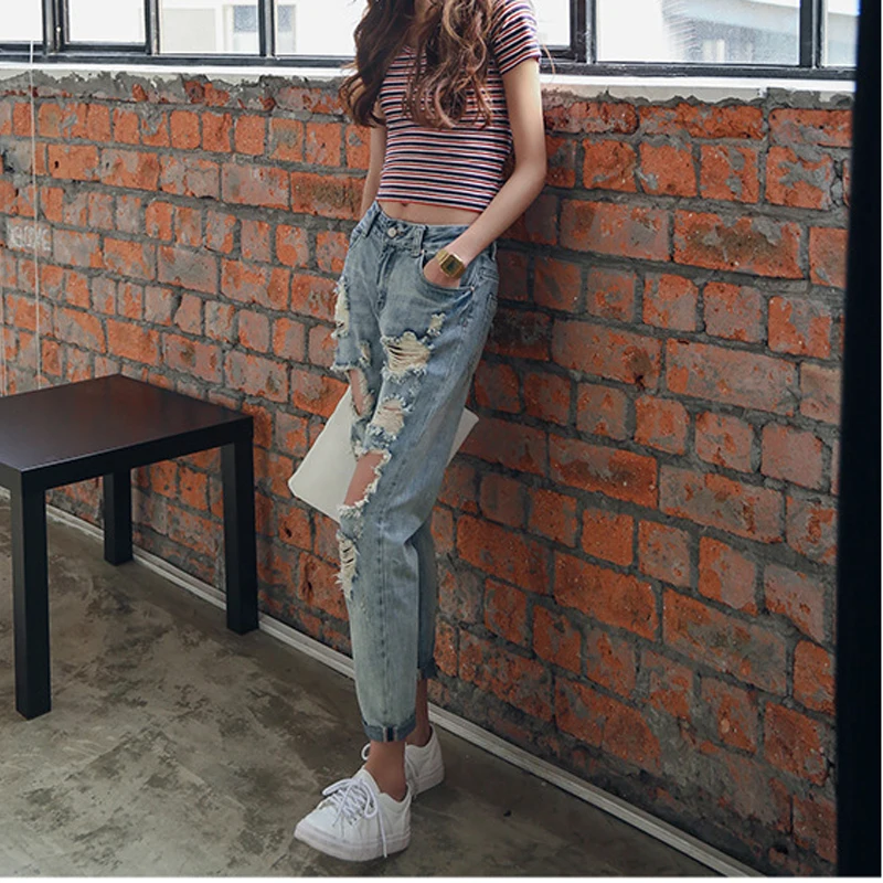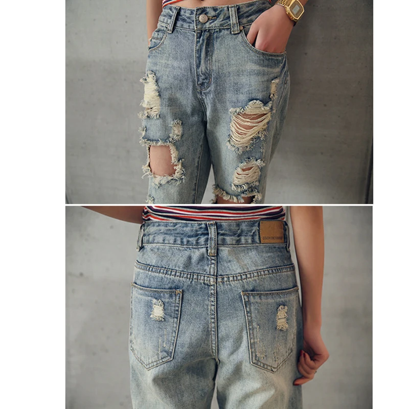 Cheap Plus Size Distressed Boyfriend Jeans For Women High Waist Destroyed Hole Ripped Jeans Baggy Jeans Woman Broken Harem Denim Pant Free Shipping