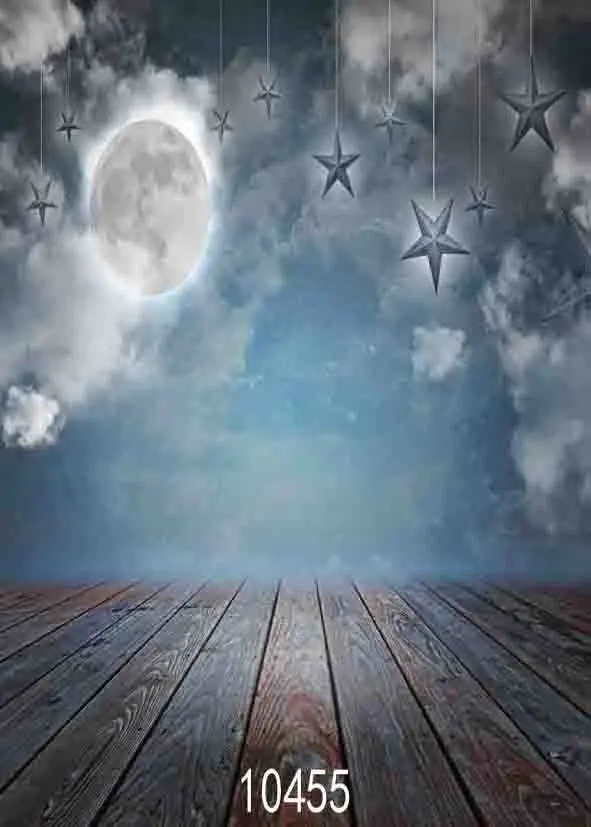 Newborn Backdrop Cartoons Night Sky Children Photo Background Clouds Yellow Stars Background Customize Backdrop