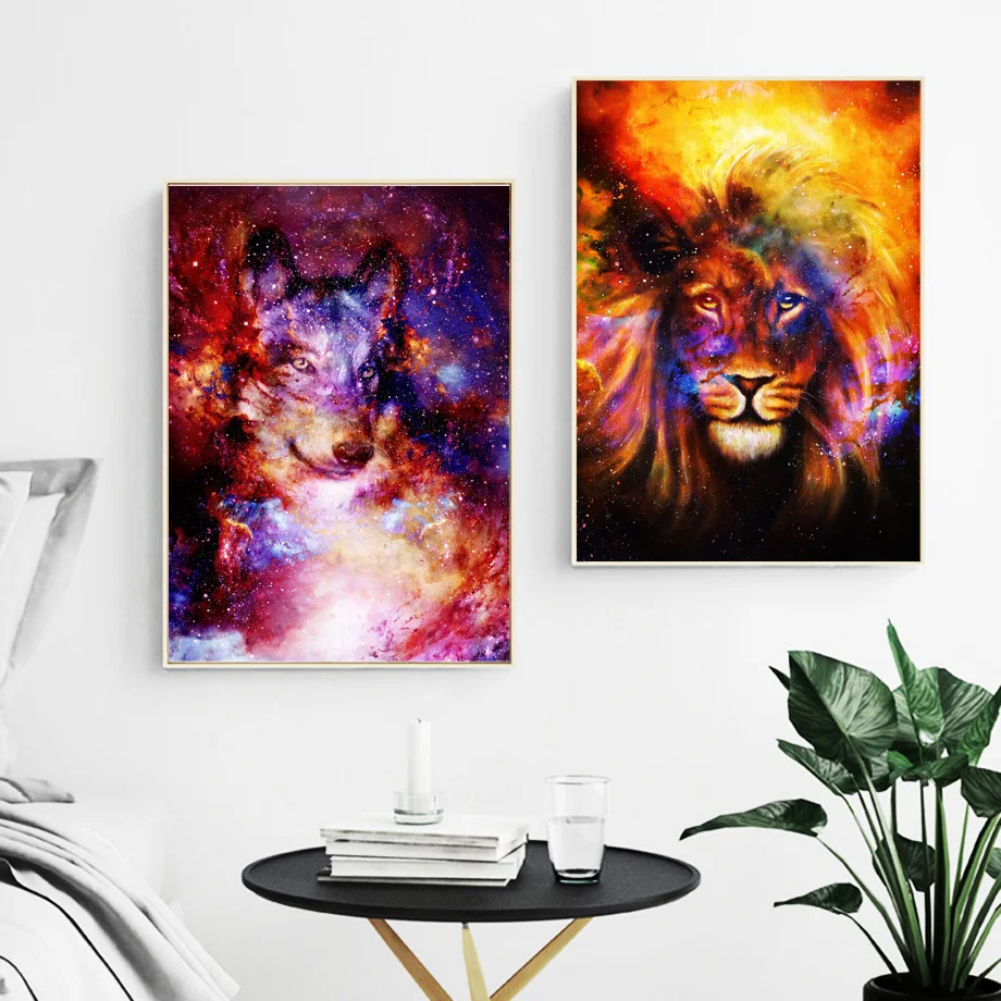 Cheap Surreal Galaxy Lion Wolf Tiger Wall Art Canvas Painting Nordic Poster And Print Animal Wall Pictures For Living Room Home Decor Free Shipping