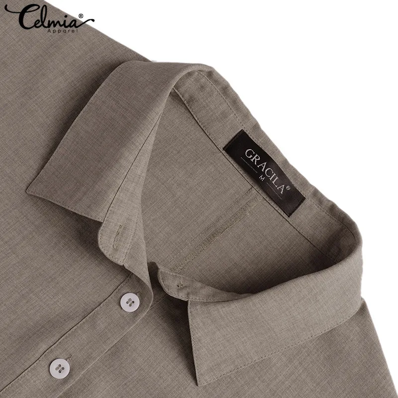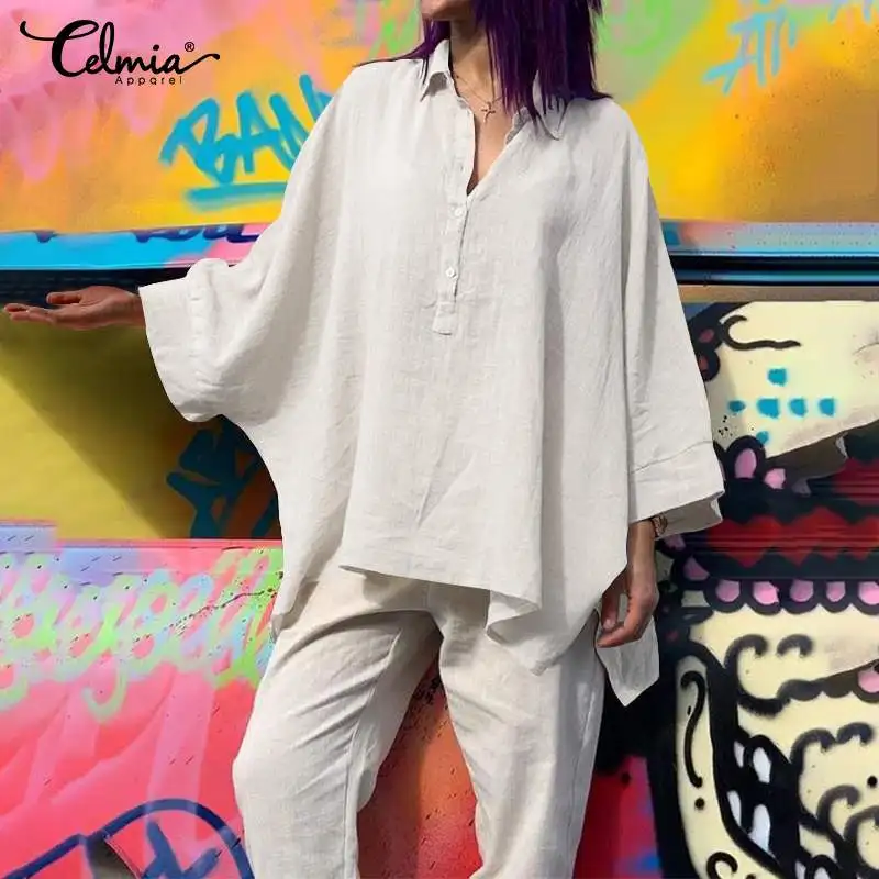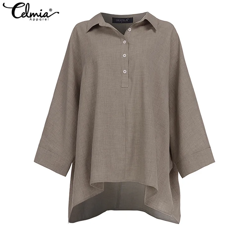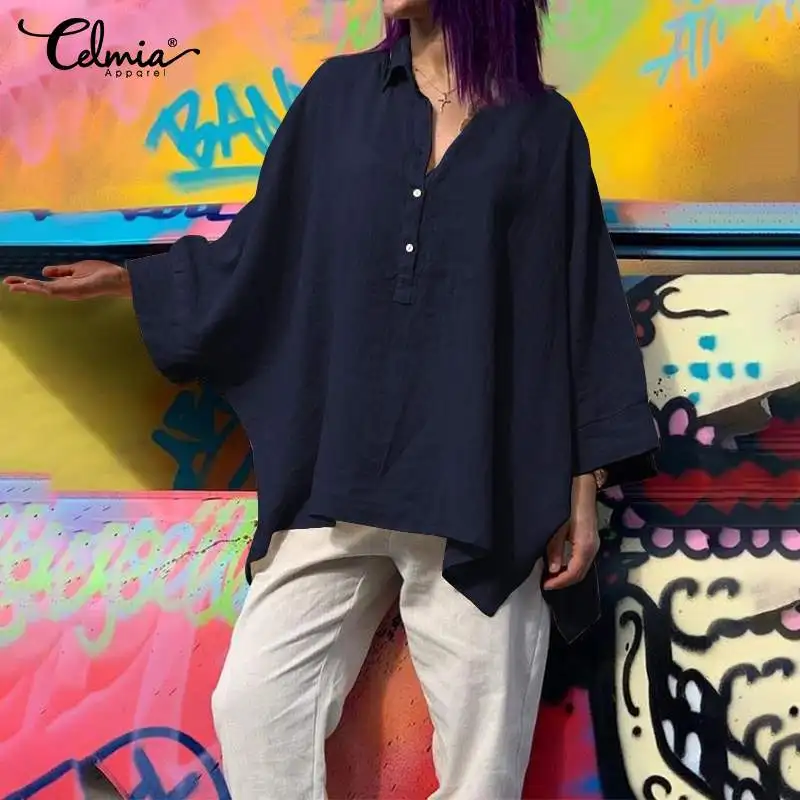 .Gallery for Top Fashion Celmia Women Vintage Asymmetrical Blouse Long Bat Sleeve Casual Office Work Lady Shirts Loose Buttons Blusas Femme 7