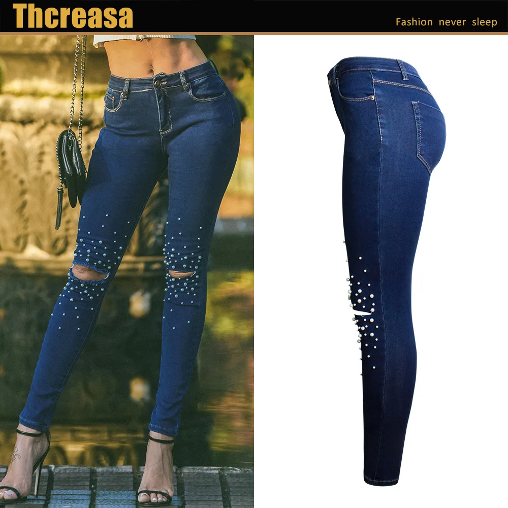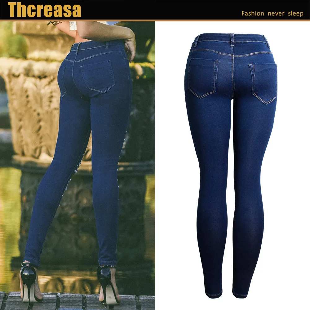 Cheap Women's Jeans Pants New High Waist Slim Leggings Pencil Pants Pearl Women's Jeans Pants Free Shipping