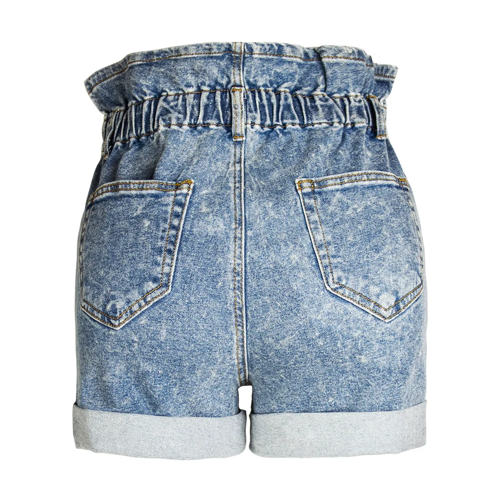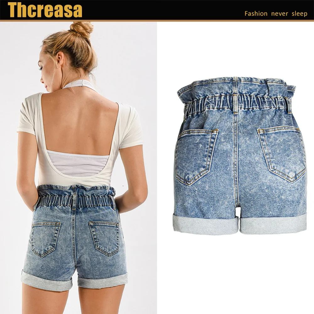 Offer Description for Women's Spring High Waist Loose Wide Denim Shorts Women's Elastic Waist High Waist Crimp Women's Shorts