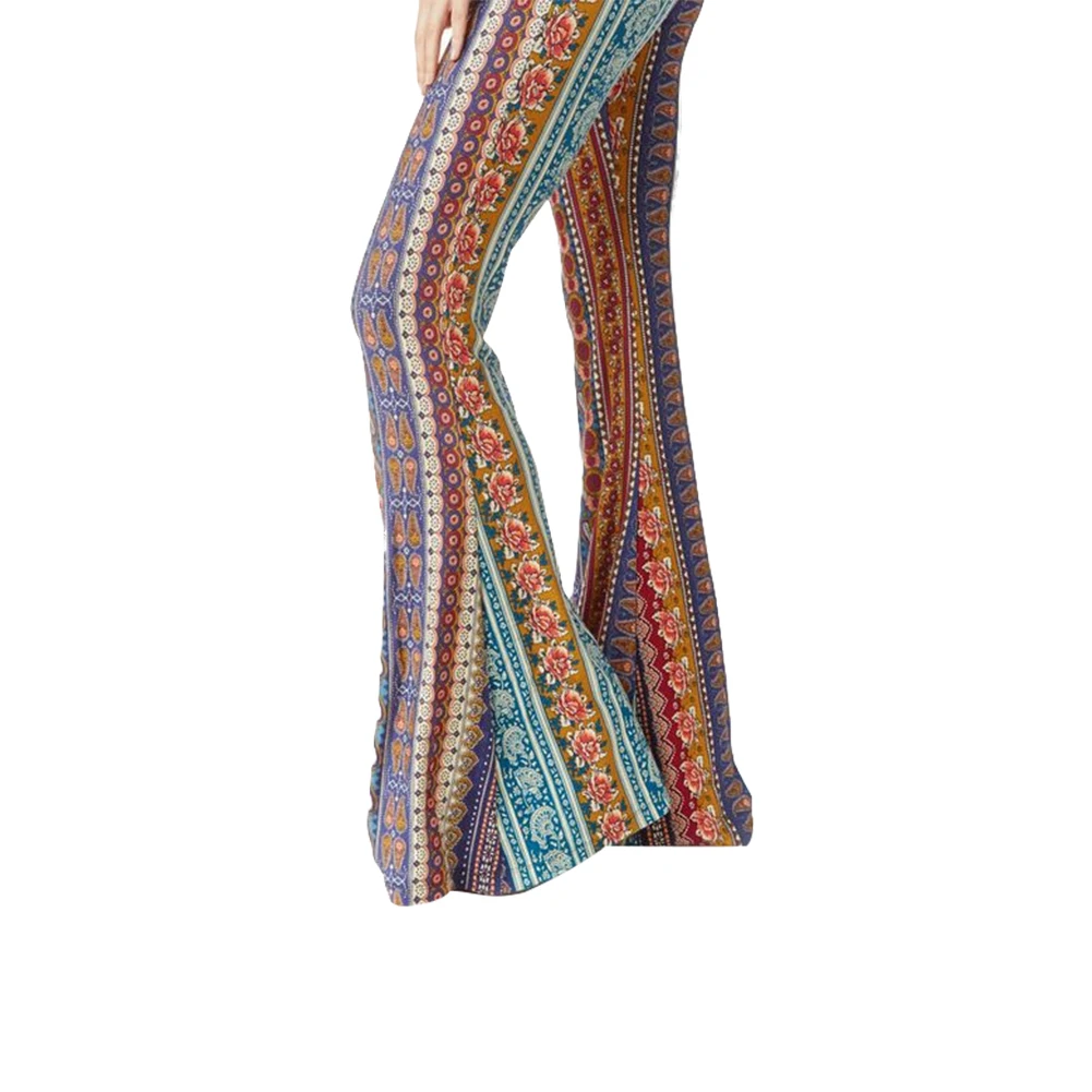 .Images of 2019 New Summer Boho Vintage Ethnic Flower Print Gypsy Women High Waist Bell Bottom Loose Wide Leg Flared Long Pants Trouse