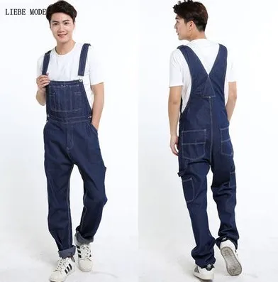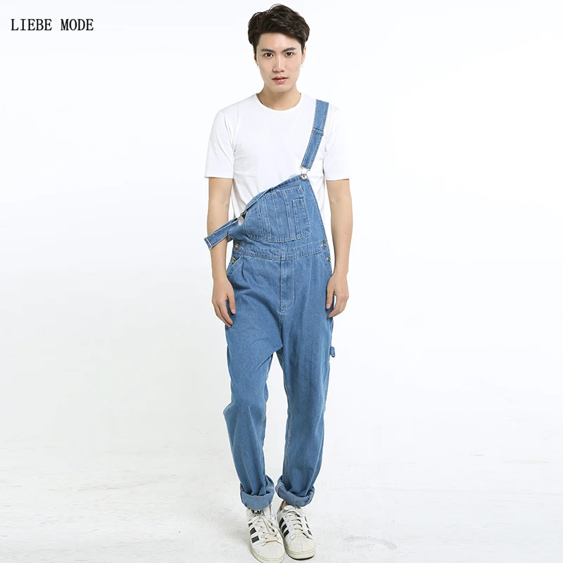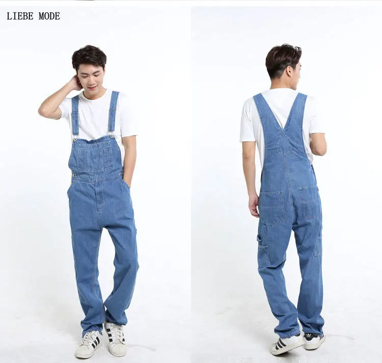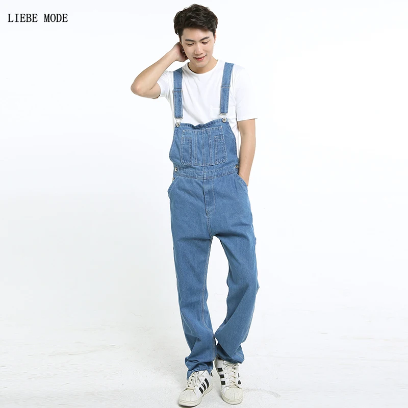 Offer Description of 2019 Spring Autumn Korean Fashion Male Blue Denim Jumpsuit Mens Loose Jean Bib Overalls Casual Jeans for Men Suspender Pants