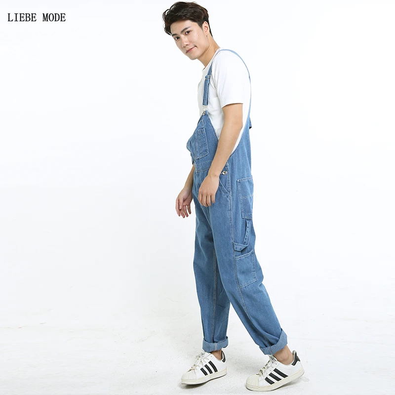 .Gallery of 2019 Spring Autumn Korean Fashion Male Blue Denim Jumpsuit Mens Loose Jean Bib Overalls Casual Jeans for Men Suspender Pants