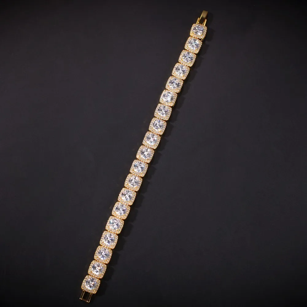Offer Description of 20cm Iced Charm Bracelet Square Cubic Zirconia Hiphop Gold Silver Color Mens Tennis Bracelets 10mm Bling Bling Fashion Jewelry