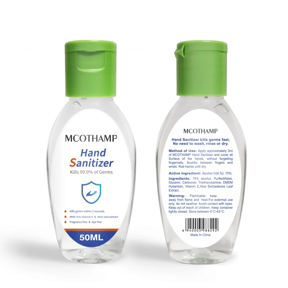 Offer Description of 50ml Travel Portable Anti Bacterial Disposable Hand Sanitizer Disinfection No Clean Waterless Clear Bottle