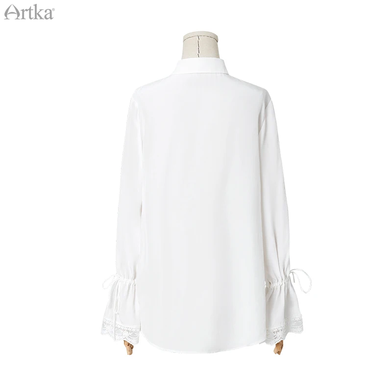 .Pictures of ARTKA 2020 Spring New Women's Blouse Elegant Lace Flare Sleeve Blouse Turn-down Collar White Romantic Chiffon Shirt SA25008C