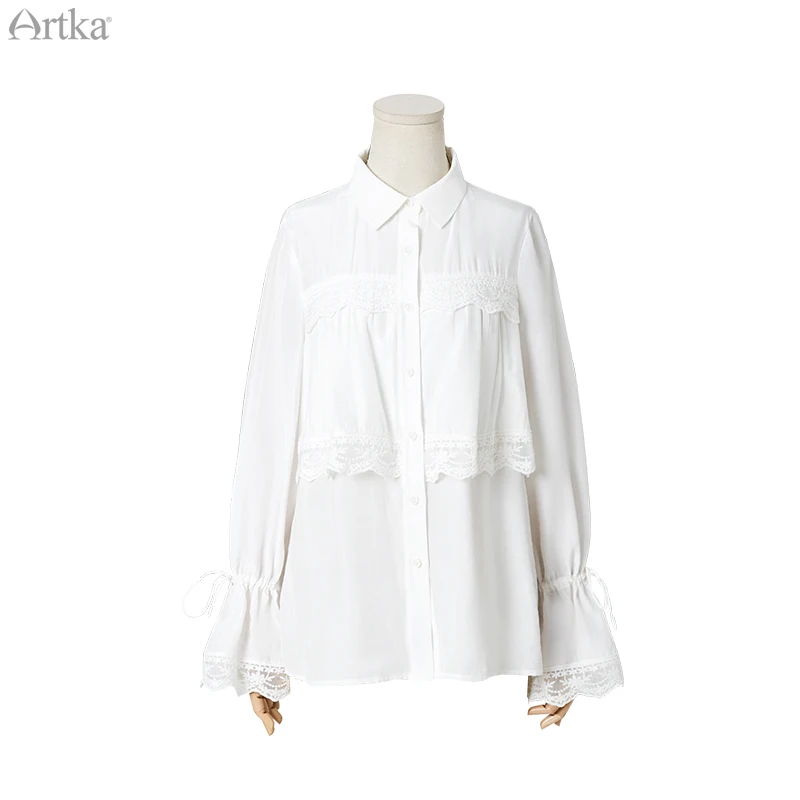 Addition Information of ARTKA 2020 Spring New Women's Blouse Elegant Lace Flare Sleeve Blouse Turn-down Collar White Romantic Chiffon Shirt SA25008C