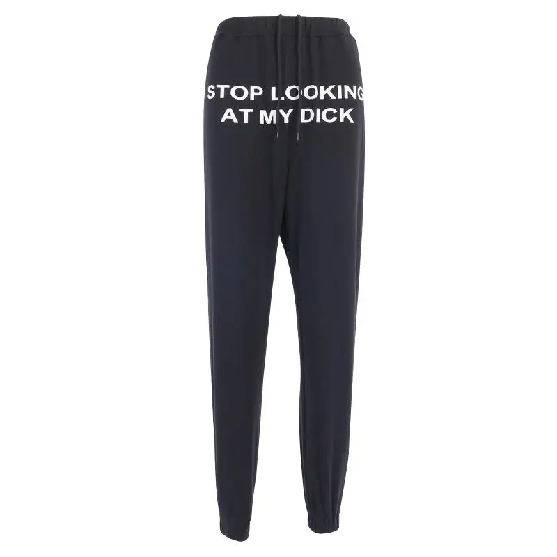 .Gallery of Casual Print Letter Black SweatPant Hip Hop Loose Cotton Women Carrot High Waist Ladies Streetwear Trousers Pantalon Mujer Funny