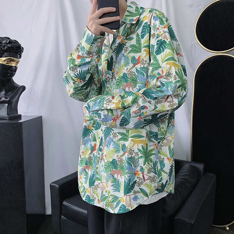 Best Flower Shirt Men's Fashion Printed Casual Shirt Men Wild Loose Hawaiian Shirt Men Streetwear Long Sleeve Shirts Mens M-2XL Free Shipping