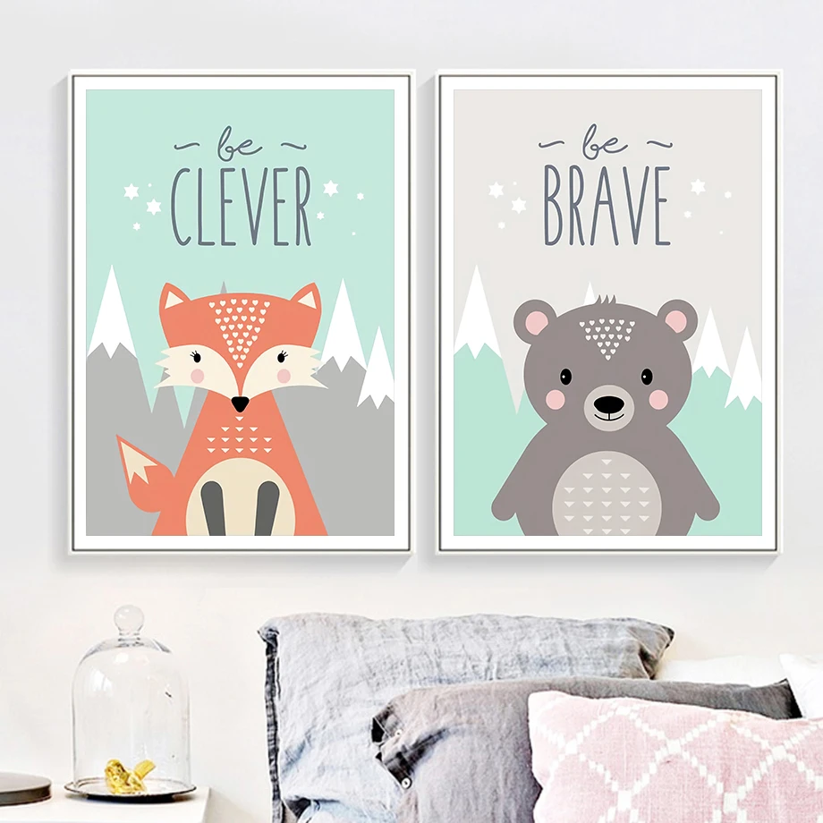 Best Fox Bear Deer Rabbit Owl Squirrel Nordic Poster And Print Animal Wall Art Canvas Painting Wall Picture Kids Baby Room Home Decor Free Shipping