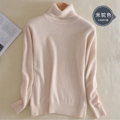 .Gallery of High Quality Cotton Cashmere Sweaters Pullover Women's Turtleneck Sweater Women Korean Solid Color Female Knitted Basic Sweater