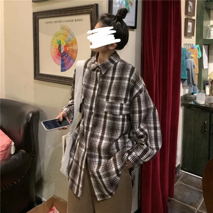 Price Description for iMucci 2020 vintage plaid loose blouses turn-down collar new spring long sleeves korean fashion women shirt tide TM1024