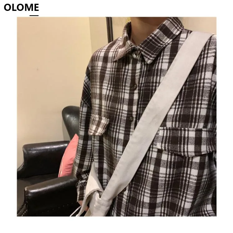 .Images for iMucci 2020 vintage plaid loose blouses turn-down collar new spring long sleeves korean fashion women shirt tide TM1024