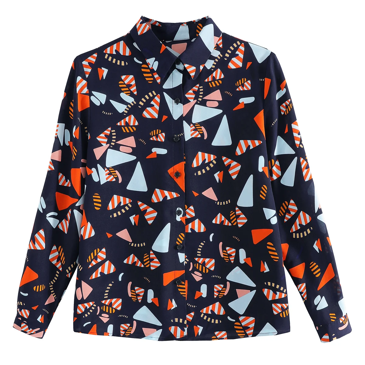 Large size loose cotton women blouses 2020 summer new printing women blouses tops casual long sleeve V-neck women shirts