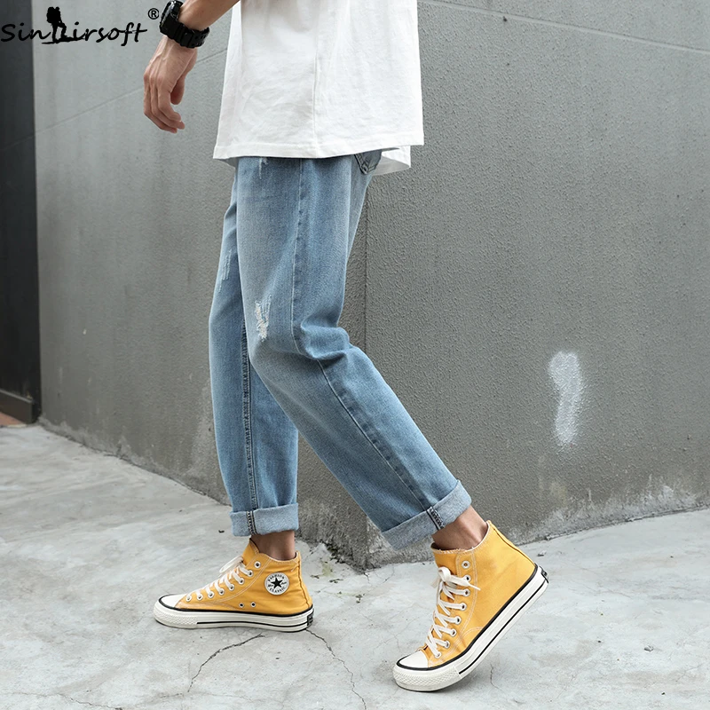 Buy Men's Spring And Summer New Cotton Soft Stretch Straight Jeans Fashion Trend Casual Scratch High Waist Wide Leg Pants Men Right Here and Right Now or before 2098-12-31 and You will save US $30.09 or 59%, Because before price is changed afer 2098-12-31 you will just pay for 20.91, not in Reguler Price at 51.00. Yap! This is I mean you will Save 59% / US $30.09