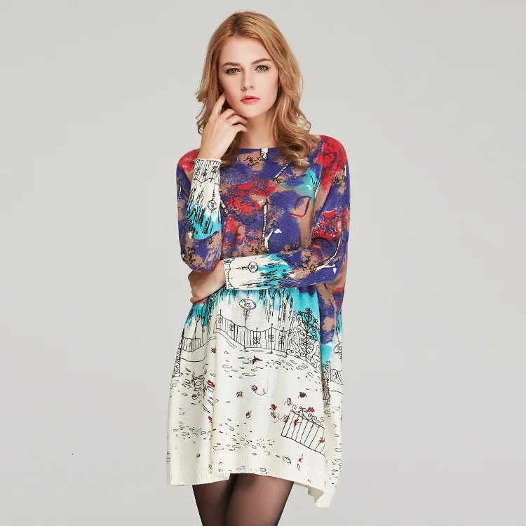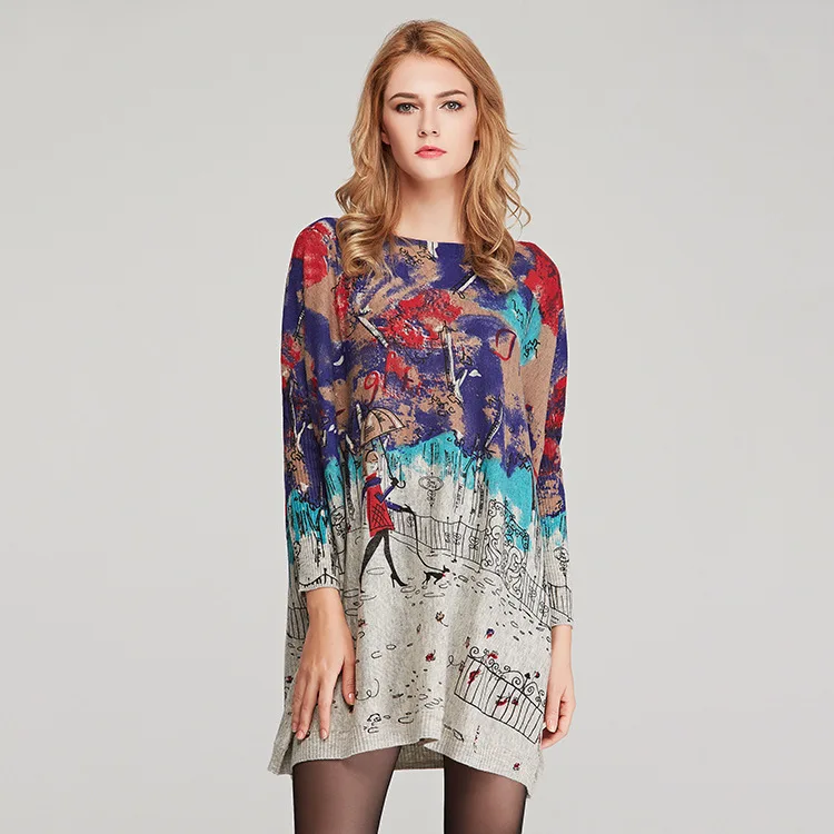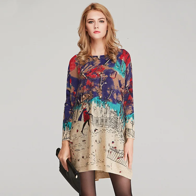 .Images for New Autumn Winter Printed Women Sweaters Slash Neck Long Sleeve Casual Knitted Pullovers Ladies Long Jumpers Pull De Noel Femme