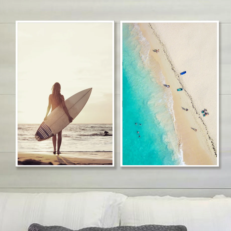 .Pictures for Ocean Beach Woman Surfboard Aerial View Wall Art Canvas Painting Nordic Posters And Prints Wall Pictures For Living Room Decor