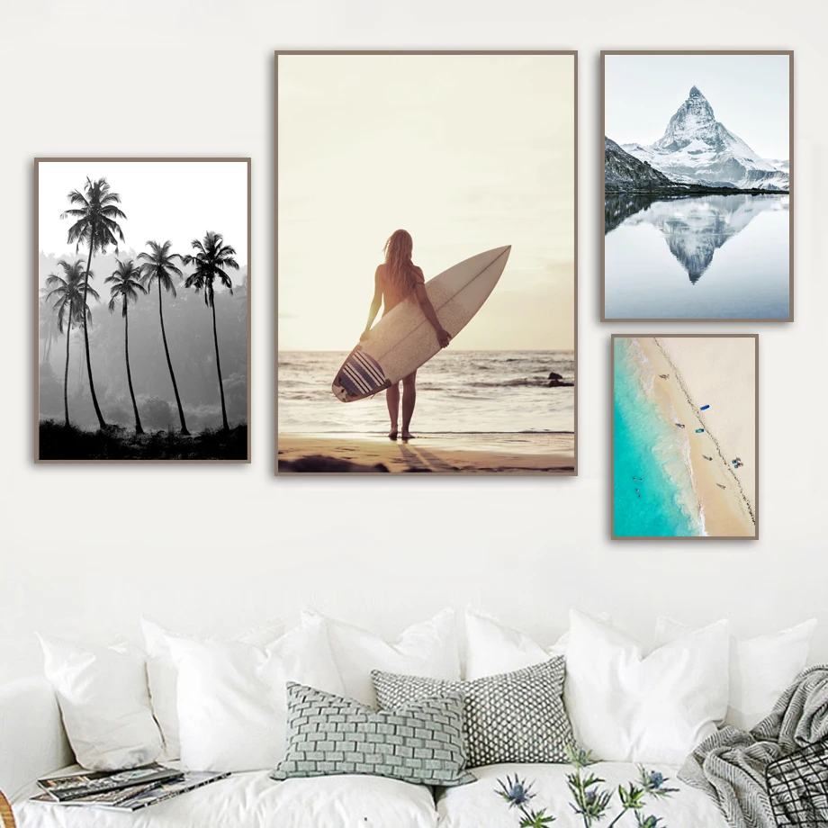 Best Ocean Beach Woman Surfboard Aerial View Wall Art Canvas Painting Nordic Posters And Prints Wall Pictures For Living Room Decor Free Shipping