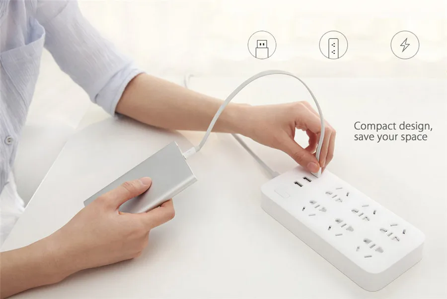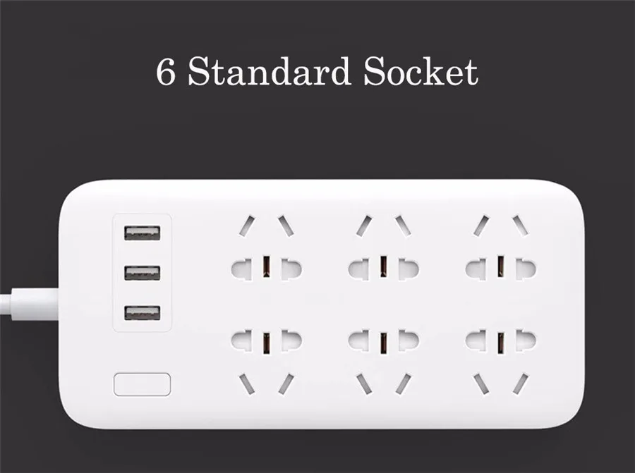 .Images of Original Xiaomi Mijia Mi Smart Power Strip 2A Fast Charging 3 USB Extension Socket Plug 6 Standard Sockets