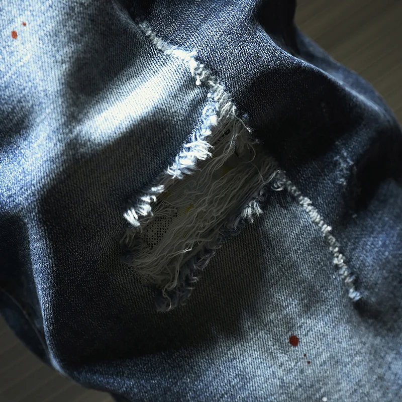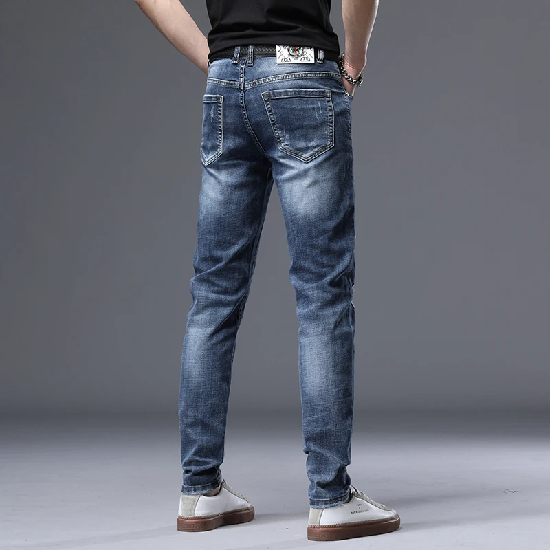 Addition Information of POVOTE jeans men's hip hop trend pants slim pencil pants men's jeans pants locomotive jeans embroidery trend design