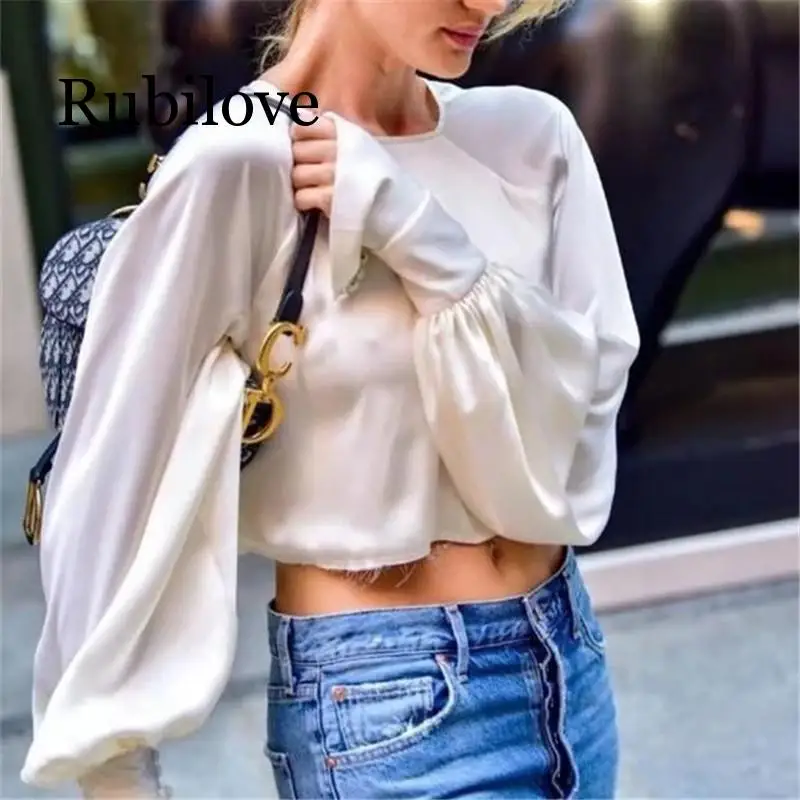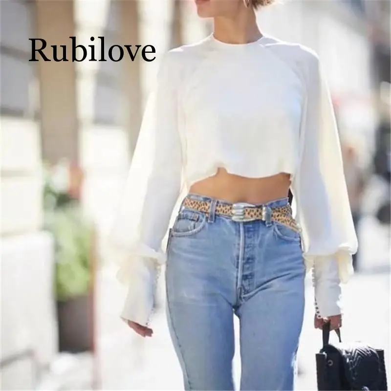 Best Puff Sleeve Solid Crop Top Women Blouse 2019 Spring New Fashion Shirt O-neck Frayed Vintage Chiffon Blusas Lady Free Shipping