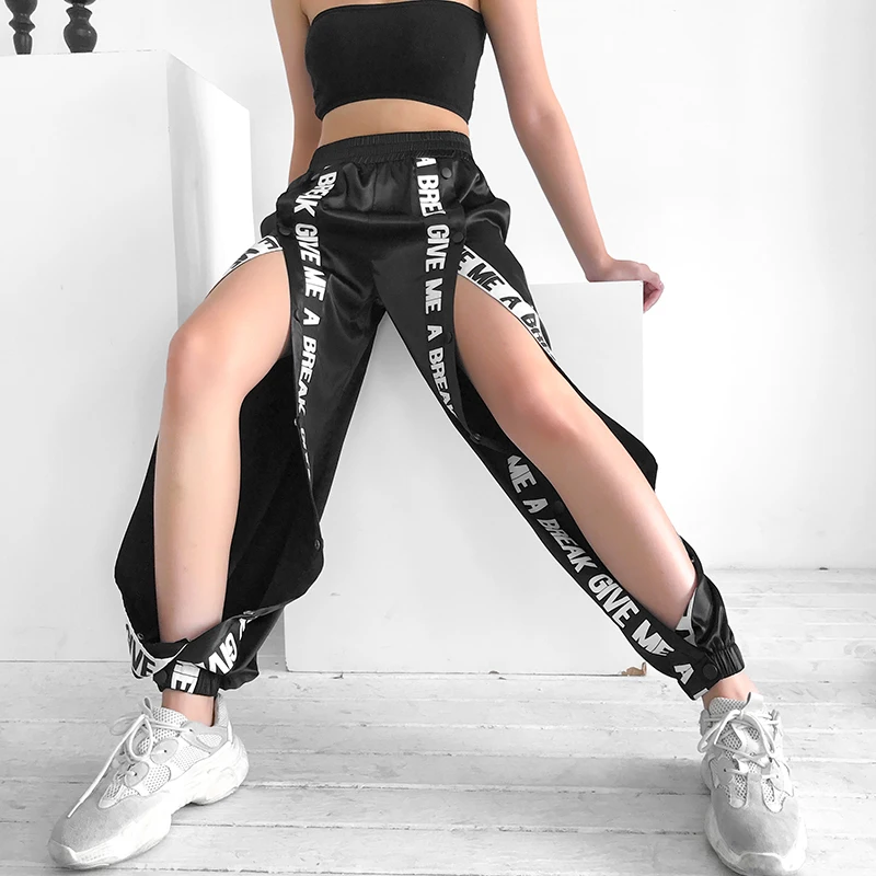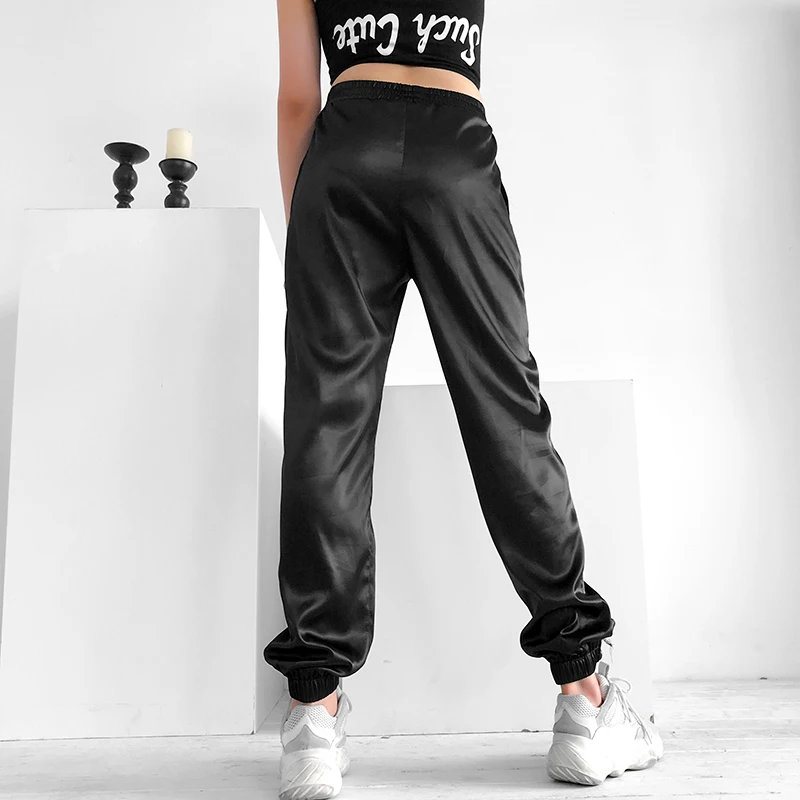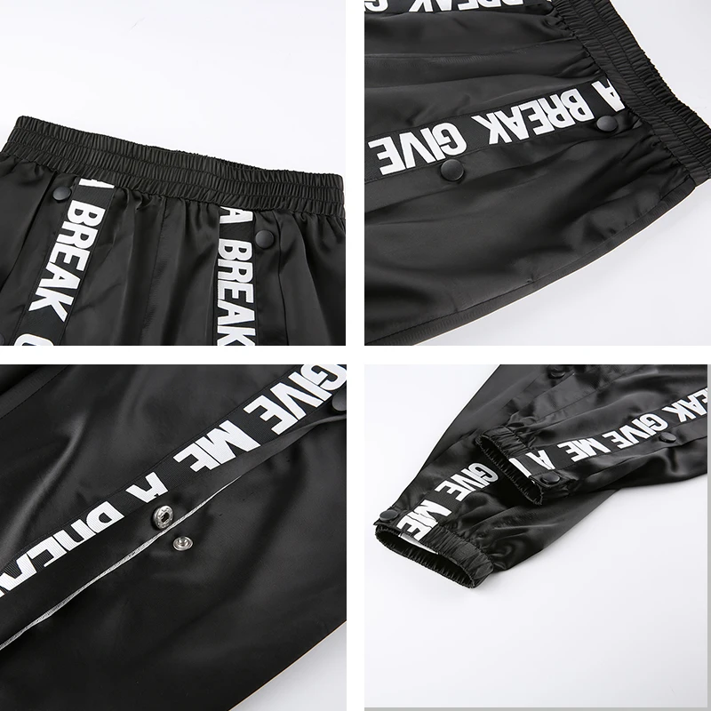Addition Information of Rapwriter Casual Two Side Button Loose Sweatpants Women 2019 Summer Stretch High Waist Jogger Fashion Letter Harem Pants Black