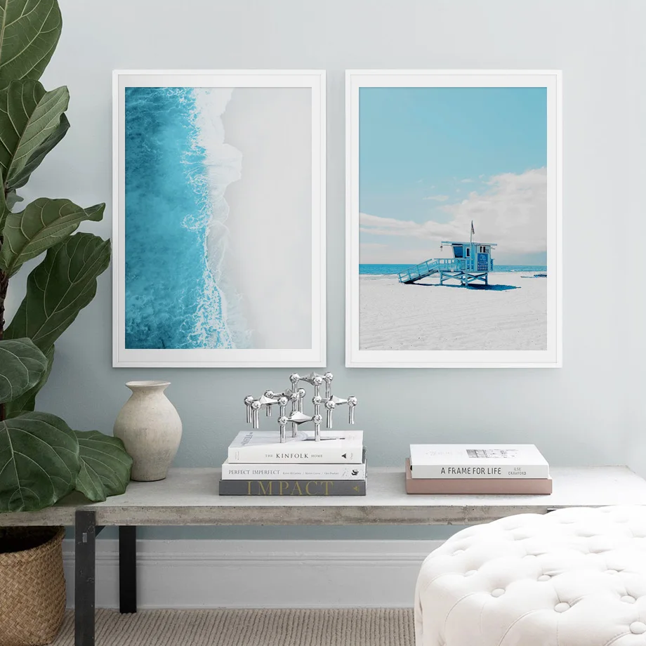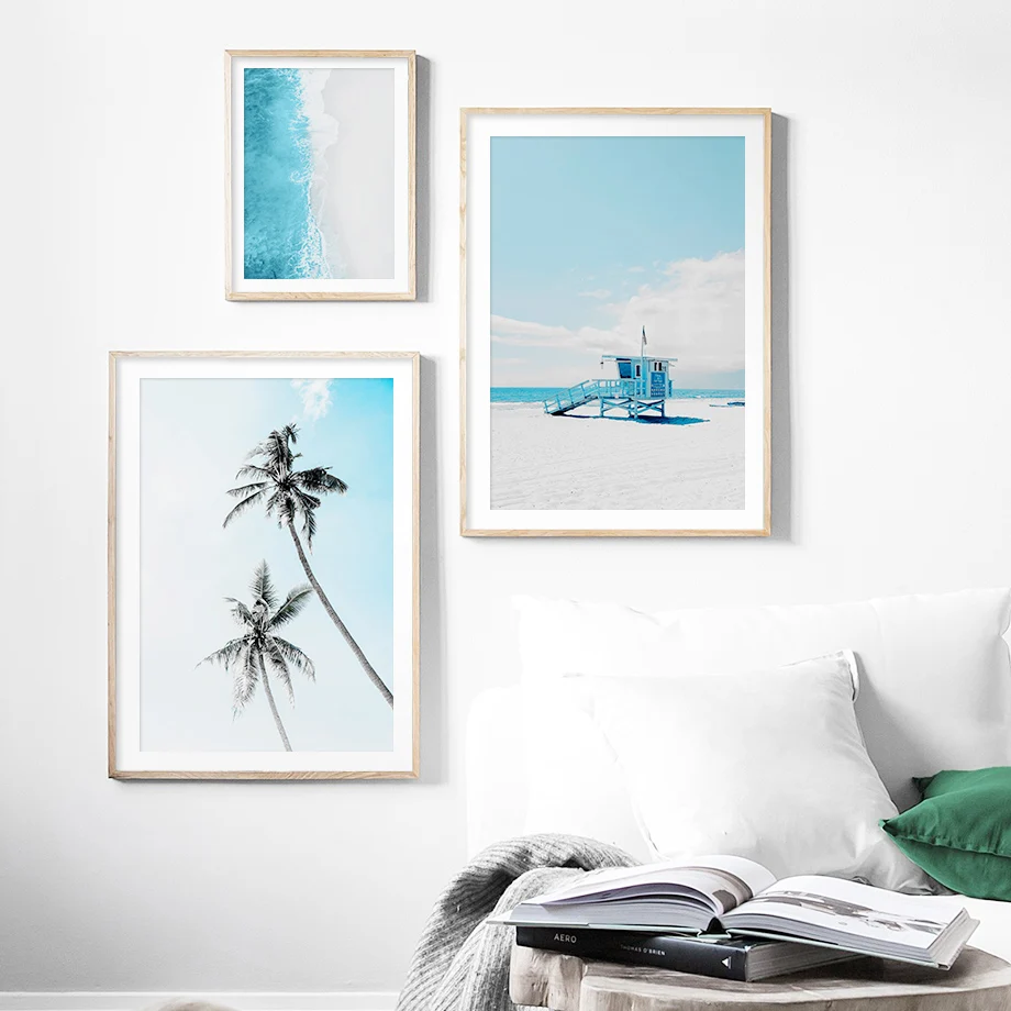 .Gallery of Sea Beach Tree Blue Scenery Nordic Posters And Print Wall Art Canvas Painting Wall Pictures Living Room Scandinavian Home Decor